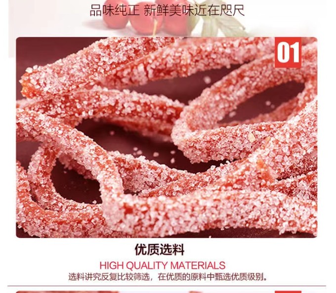 雪花山楂条500g山楂丝雪花条山楂干山楂球果丹皮山楂制品零食包装