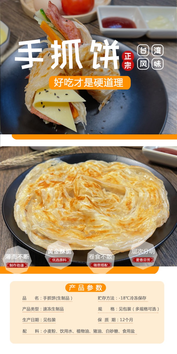 手抓饼葱抓饼早餐煎饼整件批 发面皮商业装100片送纸袋