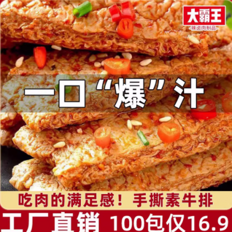 大霸王手撕素肉100包素牛肉排卷豆干爆款香辣小包装零食大礼包