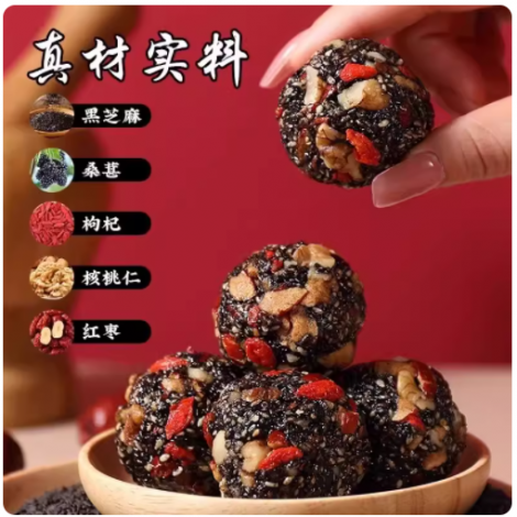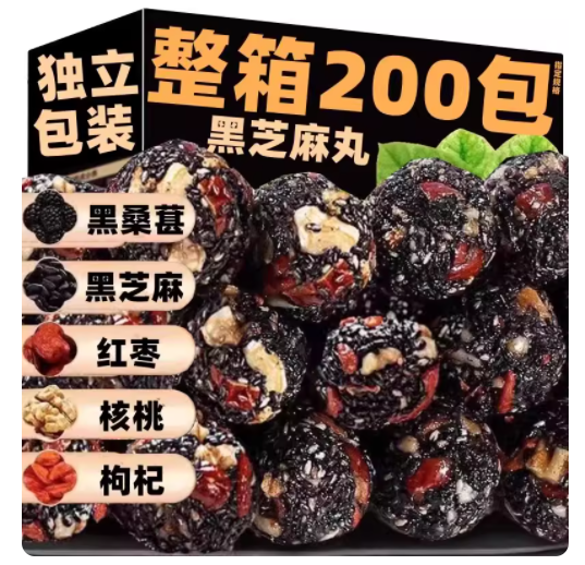 黑芝麻丸桑葚红枣枸杞黑芝麻丸球糕点整箱独立包装零食优质零食